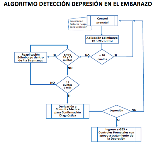 4º En control de embarazo siguiente, chequear si el diagnóstico fue positivo y el correspondiente ingreso a Garantías Explicitas de Salud (GES). Chequear adherencia al tratamiento de la depresión y seguimiento de las indicaciones.
